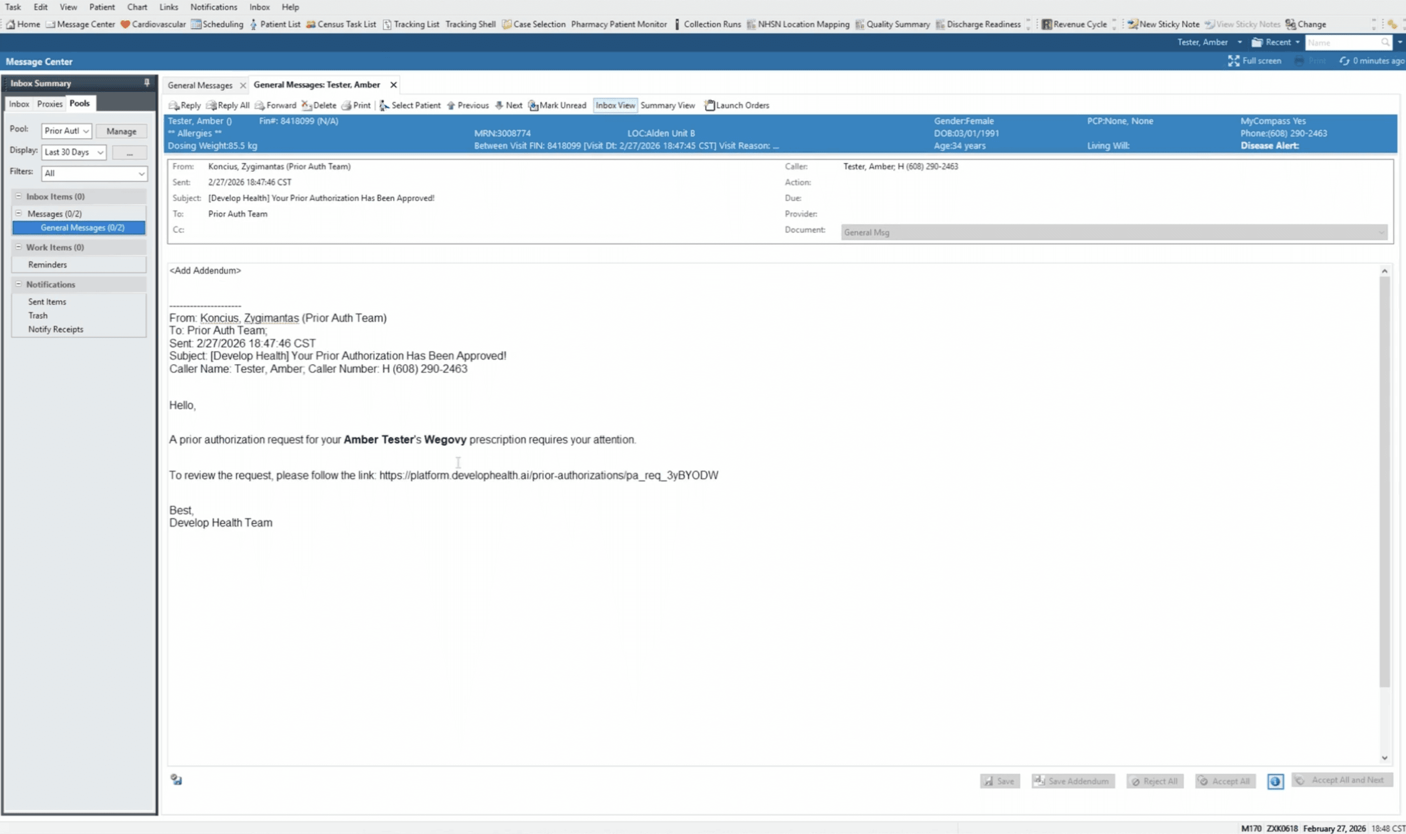 Develop Health monitors the request, checks status automatically, and notifies your team of approvals, denials, or missing information.